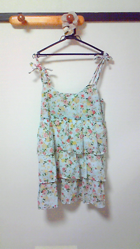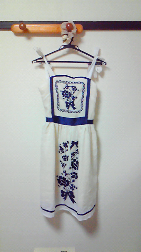 ・白色ベースに青でお花とかリボンとか描いてあるワンピース